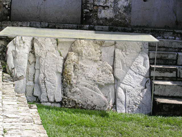 Well, not being content with jockeying once over the Sierra mountains, we decided to do it again for fun. On our way into the Yucatan, we made several "ruinous" stops along the way. Seeing as Mexico has hundreds of pyramids and palaces, it is difficult for the vehicular traveler to ignore the opportunity of walking in the footsteps of these creative and mystifying peoples. OK, I will tell you right now...there will be mucho pictures of ruins. Each city or ruin has its own character and its own distinctive style and if you look closely at the pictures, you will notice the differences and the uniqueness of each place. After nine ruins thus far, we are still in awe of these exquisite examples of the creativity and the tenacity of these various peoples. Palenque. One of the more popular ruins, Palenque (pa-lain-key) was inhabited as early as 300 B.C. During 300-900 A.D, the ancient Maya city was a ceremonial center for the high priests and the civilization peaked at around A.D. 600-700. When the city was rediscovered in the 1840's, the jungle was doing its best to reclaim the ruins as the city was buried under centuries of accumulated earth and a thick canopy of jungle.