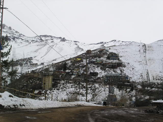 Having heard that there was an expected storm creeping into Santiago late on Tuesday, we upped our plans and drove up to the local mountains to avoid being caught in the snowy deluge. Much like the Southern California mountains, this part of the Andes gets just enough snow for skiing but still retains its sunny days. Going back a few weeks, we had given a ride to a backpack with legs, or rather, a young German girl named Christine carrying a huge backpack compared to her petite size. We lunched with her and as it turned out, she had a friend in the Santiago mountains that might have been able to help us find a place to park whilst skiing. She gave us a business card for a very charismatic Bill and a few emails and telephone calls later, there we were - parked just outside of the Refugio Aleman that Bill manages, which is nestled at the base of the Farallones-El Colorado and Valle Nevado ski mountains.