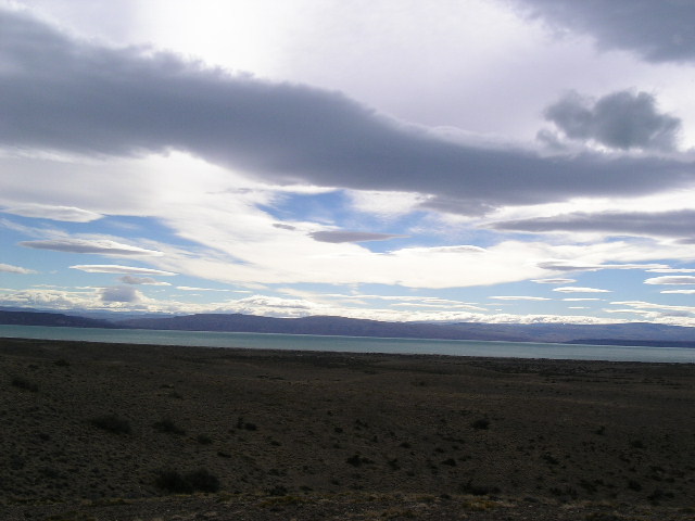 One thing that I have not mentioned as of yet, was that we damaged a tire driving on the Carretera Austral. The tire did not go flat; however, it did develop a telltale bulge which means it was ready to go. Since this meant using our last 10 ply (heavy duty) spare tire, we started to look for replacement tires. Our search began in Puerto Aysen and ended in Chile Chico - to find out our size tires do not exist in the entire country of Chile. So, looking forward to Argentina, we resumed our search in Perito Moreno and again found that our size of tire does not exist (yet) in Argentina. For those of you that are tire savvy, we have an 8.75R/16.5LT and it was the 16.5 rim diameter that was the problem (with the 8.75 being the tire width). After several attempts by very helpful Argentineans to locate the tires, we took the matter into our own hands and called to a Goodyear distributor. Fortunately, we were connected to a very sympathetic woman named Carmen and she was to search for the tires and have them shipped to a city included within our near future travels. Leaving Perito Moreno meant traveling approximately 600 km (about 450 miles) on a rock/gravel/dirt road that is known to eat many a tire. Well, not being ones to be left out, we also had a tire (one of our last two 10 ply, heavy duty) succumb to the road's bite. Seeing as our front tires were much newer (having been replaced in Panama), we switched the front to the back flat and set the older spare up front. Limping to a way-station of sorts, we sat out the high winds and contemplated our very slow and careful drive the next day. Why are we risking being stranded in Patagonia? Heck, people can be in the middle of a crowded, big city and feel as though they are stranded...we just happen to have no one around. We tip-toed a whole 120 km (about 90 miles) in five hours the following day and ended up at an oasis of sorts called La Siberia. Appropriate name as this camping area was the only sign of human existence for many, many miles. The owners were wonderful and the food was equally good. Again, our drive to La Siberia and the evening at the camp provided my camera with fantastic displays painted by the clouds. Traveling at a snail's pace, we made it to El Chalten, a small and rather quaint town that serves as a base-camp for mountaineers and other crazy people. I say crazy because the winds are fierce, the cold is chilling, the mountains are unforgiving and yet these crazy people enthusiastically march around for days, even weeks in this environment. Uh uh, not me. Ok, maybe for one day... El Chalten is the archway for the Parque Nacional Los Glaciares and it is a very young town. It was hastily thrown into place in 1985 so that Argentina could claim the land before Chile did, hence creating another confusing border twist in Patagonia. In the summer, over 25,000 mountaineers, hikers and climbers descend upon this small hamlet of 140 - 400 people (depending on the season). Fortunately, it still retains its quaint and welcoming atmosphere. We found an excellent camp and we tucked into a corner of two buildings so we could be protected by the winds. Now, it may sound all adventurous to say we parked out in the open land, under starry skies, but when you are enduring 20 - 50 mph winds all day and night, you forgo the romantic notion and look for any sort of wind-break you can find. We are renaming Patagonia, "Vientogonia" (viento is spanish for wind). The winds are incessant! and damn cold!