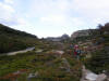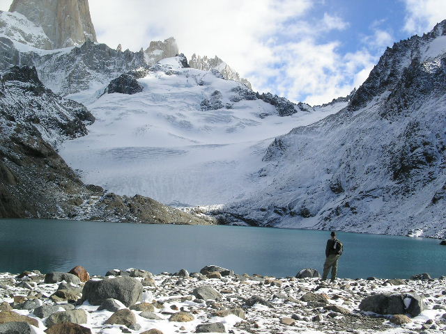 We started our week with a little jaunt up and around the Fitz Roy range and along glaciers. This jaunt was an arduous, nine hour trek up over tripping boulders, through grasping trees and along sucking snow-covered mud. I have found out that I have four-hour knees, for that was when my knees reminded me that I am an old broad with six knee surgeries and "What was I thinking!" I definitely have a daft side to my character. The trek was in four parts: an up and down hike to a base-camp for mountaineers, a frighteningly steep and treacherous climb to Laguna de los Tres and the base of the Fitz Roy range, a winding, yet relatively flat walk across a valley, and finally a knee-grinding, back-stiffening descent into the city of El Chalten. No matter how difficult this trek was, it was made incredible by the phenomenal weather (seeing as we had relentless wind and rain the day before) and the magnificence of the beauty surrounding us. We stumbled over the crest of our mountain and beheld yet another glacier-fed, turquoise lake. The Laguna de Los Tres leaks into the Laguna Sucia, next to and down below. You could hear the Glaciar Rio Blanco creaking and cracking and groaning as water escapes from underneath. All of this was eclipsed by the visually dominating Fitz Roy and Poincenot spires embracing the glacier. We carefully made our way back down (with a few new bumps and bruises to prove that I can slip and fall very well) and indulged in a much-needed lunch. Having accomplished the worst of the trek, we looked forward to the several kilometer walk across the sunny valley.