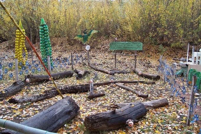 Continuing up the coast, we passed through a couple of tidy, quaint towns that were originally settled by Welsh immigrants. Dolovan retains much of its charm and it was not uncommon to see the wooden water-wheels in the small rivers that course through town. We made the stop in Gaiman for the purpose to see two "parques" that specialized in old things. The Parque Paleontologico Bryn Gwyn is a lengthy nature trail that showcases many fossils found along the Rio Chubut. Unfortunately, they only close on days that rain and the Rain God Chaac (remember the Mayan god) decided to make his presence known. With this disappointment, we went over to our second parque and met with nothing but fascination. The Parque El Desafio is a masterpiece park of junk created by an eccentric 80ish man, Joaquin Alonso. Since 1998, this parque has been in the Guinness Book of World Records as the largest "recycled" park. Mr. Alonso, a very creative and ingenious fellow, has compiled bottles, cans, plastics, metals, etc., anything he could remake, reshape, recolor and reform into a park that captures, not only children's, but also stodgy adult's imaginations. To say a trip through this park was a trip, is stating it mildly. Everywhere we turned, we were within a barrage of colorful flowers created from plastic bottles. We were guided along through can-covered fence rails with plastic bottle or hanger spindles. Old cars made for comical commentary as did old farm equipment. Throughout the labyrinth, very witty sayings were displayed on numerous plaques and not one failed to make us laugh. We should have more people that are a little bit eccentric like this...
