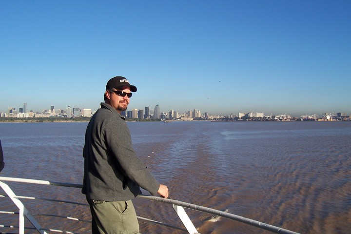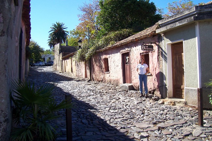 One thing that is great about Buenos Aires is that it has quite efficient subway system called the "subte" and it gives Buenos Aires bragging rights for possessing South America's oldest subway. Built in 1913, the subte still runs with many of its ancient cars and are easily distinguished from modern trams by their rich wood interiors and large metal emergency brakes. Riding in these cars feels like an old wooden roller coaster ride where you jostle back and forth as you trundle down the track. Zipping around the city either by subte or by taxi was relatively easy and economical. There is something to be said about not having to drive and hassle with the traffic. Taking advantage of the public transportation, we visited yet another neighborhood near Palermo called Recoleta. As mentioned on the previous page, Eva "Evita" Peron was entombed in the Cemeterio de la Recoleta to the horror of much of the elite society in Buenos Aires. How she got to Recoleta is truly an intriguing story. Evita's body was "kidnapped" by a rival of Juan Peron (General Pedro Aramburu) and taken to a little-known cemetery in Milan and then to Madrid. After trying to get the Vatican to sequester her cadaver and failing, Evita was returned to Buenos Aires in 1974 to rest in a subterranean vault (remember, she died in 1952). And, if this cadaver-napping was not enough, Aramburu, the bitter rival that stole Evita's body, also had his remains held for "ransom" by supporters of the Perons (after his assassination in 1970). Only when the government in place in 1974 ensured Evita's return did Aramburu's body reappear for entombment in Recoleta, coincidentally enough, only a short distance away from Evita. Argentines take their politics, alive or dead, very seriously. Again, walking through the cemeterios may seem a little creepy, alright, a lot creepy; however, they are so amazing and interesting. Many of the interiors are visible through the glass doors and several coffins and ornate cremation containers are peacefully displayed. Some of the elaborate coffins are very small and viewing these throws a blanket of sadness over an already solemn mood. Our last day in Buenos Aires saw us getting Cindy prepared for her next push and joining Larry and Marylyn for dinner. We said our good-byes and are already looking forward to seeing them in Brasil. We actually had to set our alarm clock to awaken early the next morning so we could make the ferry from Buenos Aires to Colonia, Uruguay. I forgot how much I loathe those contraptions. We proceeded through customs with the usual bureaucratic paperwork and made it onto the ferry for the three-hour tour across the Parana River. This river may be familiar to those of you that actually read this webpage and not pull the X-rated magazine stunt of just looking at the pictures (yeah right, you read the articles). The Parana River courses through Brasil and combines with the Iguassu River after the Iguassu's waters are thrown over the Iguassu falls. If you need a reminder of that magnificent and magical place, a quick click here will get you there. We quickly disembarked and found Cindy a nice, shady tree-lined street to rest while we enjoyed a terrific lunch and a lengthy walkabout Colonia, Uruguay. Appropriately named, Colonia is a step back into a Colonial time seemingly forgotten. Built in 1680, it still retains its charmingly attractive "village" feel and because of this, UNESCO has proclaimed the Barrio Historico a World Cultural Heritage site. And Uruguay itself, being wedged in between Brasil and Argentina, is somewhat a buffer between the super-countries and as a result, has become known as the "Switzerland" of South America. For a small country, Uruguay has quite a specialness about it. Not to mention that it sits in a similar latitude (southern hemisphere) to that of Los Angeles and the weather is quite temperate. For the price of $1 for both of us, we were given access to not one, but six museums throughout Colonia. Each museum was a collection or a restored home owned by a private person or small group that maintains the antiquities for the enjoyment of the public. From the Casa Rosada, the first Portuguese home in Colonia, to the various artifacts of china, pottery, tiles, clothing, etc. retained from the original settlement. Again, it was a walk back in time (and a lot of ducking through the low doorways). We found a great campsite on the Parana River and we did not waste any time to catch what promised to be a spectacular sunset. You be the judge on where this sunset would rate on your scale of greatest sunsets.