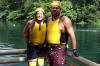 We tossed, turned, tripped and trundled down out of the park (it was a rather 'interesting' dirt road) and into Brasilia. The Distrito Federal is quite unique and when designed and constructed, it was considered one of the 20th century's architectural marvels. In 1987, Brasilia was designated by Unesco as a World Heritage site as a prominent example of the 20th century's modern movement in architecture and urban planning. In 1955, then President Juscelino Kubitschek proposed the moving of the capital city from Rio de Janeiro to the middle of the country, a region within the State of Goias. By 1957, the project was under way and in just three years, with the help of millions of poor peasants working around the clock, the modern capital of Brasilia was officially "opened" on April 21, 1960. The uniqueness of Brasilia is within its architectural, landscape and urban design. When seen from above, Brasilia appears like an airplane with the "plano piloto" (pilot plan) specifying that the city would face the giant artificial Lago do Paranoa. Within the "fuselage" are all the government buildings and monuments. The "cockpit" is the location of the plaza of three powers - the Palacio do Planalto (the President's office), the Palacio do Congresso and the Palacio da Justica. Extended on the "wings" are the apartment buildings for the majority of the city's workforce. We made our way around the city and reflected on how Brasilia, at the time of its construction, was definitely a wonderful spectacle of architecture and urban design. Unfortunately, the city has fallen into the same rut that so many once-gifted cities fall into - disrepair and lack of upkeep. The government buildings that once must have sparkled white, are now dull and weather-stained and they all seem to be in need of a good cleaning. The outskirts of the young city are being taken over by "favelas" and entering the city from any direction takes you through several lights of people begging for money and views to the slums. In a way, it is typical of what many of us see in our every day - someone acquires something new and just fails to maintain the item. In other words, it loses they let it lose its luster. However, on a brighter side, there are newer buildings that are reviving the architecture from the drab stone that remains to shiny glass enclosures that capture and reflect the magnificent sky that seems to surround you in this flat urban expanse. We only spent the day in Brasilia as we wanted to return to Goiania and Kike's "resort" for the evening feast and fun. Also, we needed a good night's sleep for our early jaunt south to Rio Quente, a fabulous thermal/water park resort that was like nothing I had ever experienced. Rio Quente is a huge resort nestled in a valley that is a basin for massive thermal water ponds. These crystal clear waters maintain a balmy and therapeutic temperature of 37.5C (~105F) and are always on the move (as they are truly rivers). The admission, food and drink were quite inexpensive; however, some of the activities' costs could be quite steep. Activities included SCUBA diving, snorkeling, kayaking, tubing, rafting, rappelling, rock climbing, zip-lining, sliding, pedal boating, swimming (of course) along with an awesome half-pipe ride and a serious of racing tube slides. Add to this pool-bars, water volleyball, water dancing, children's pools, fountain pools and a number of cascades to sit under, the park was amazing. We opted for the snorkeling as the water was a maximum of 20 feet deep (about 6m) and we can free dive that easily. We paid a little extra for the "scooter" which is a battery-operated, underwater propeller that cruised our lazy butts through the dive area. Diving to the bottom was easier than holding our breath and we had a blast, an absolute blast. We cruised all over and thankfully, the necessary guide acknowledged our SCUBA experience and let us meander through the incredibly unique thermal water plants. And, to make the excursion that much more awesome, was the relatively tame massive fish. We would just cut our propellers, glide up to the fish and take our time "petting" the fish. I even think I saw a couple of the fish smile at us as they trailed along in our wake. It was just really a cool warm place to play. Another venture that we could not resist was the rafting through the rapids. Even though the ride was relatively short (about 1000m or 3000'), it was a warm, wet, wild ride. You know you are in for a rather bumpy trip when you are padded and guarded from head to toe (we were given helmets, padded body vests, webbed gloves, leg guards and thick, rubber booties). The ride consists of you laying face down on a long, narrow inflatable raft and you just point down-river and go. Rocks just serve as bumpers and the narrows as chutes that propel you through the melee. I must have ingested a gallon of water as I was laughing so hard all the way down. What a rush! At the end of the day, we were wondrously
